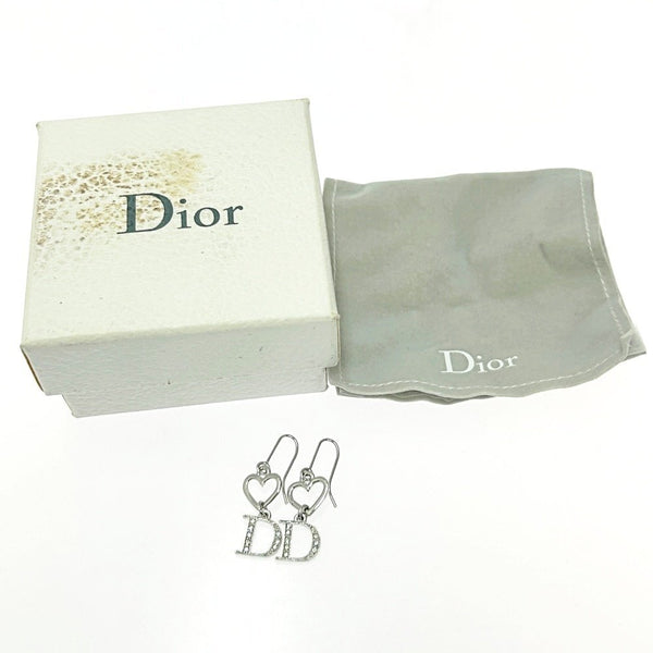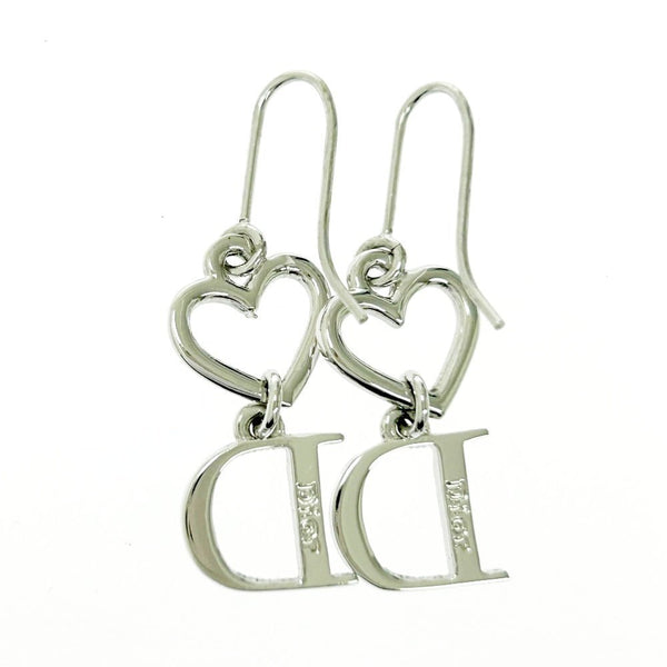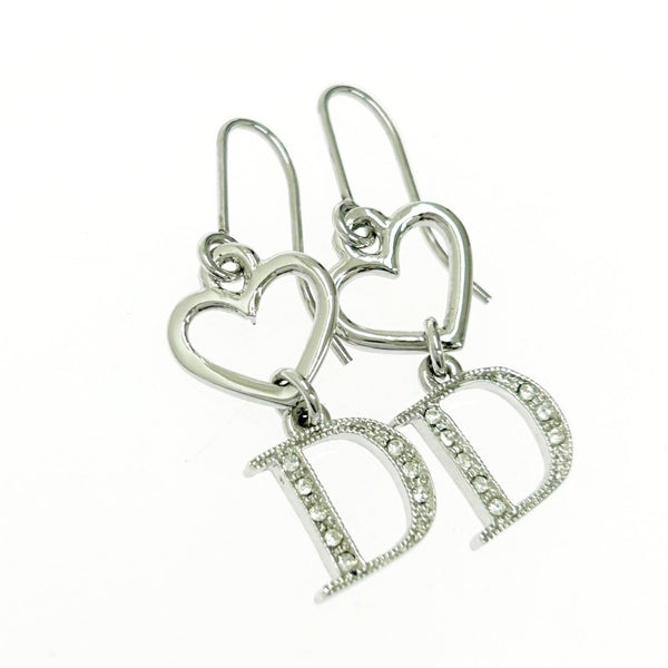 Christian Dior Heart Logo Silver Crystal Rhinestone Earrings