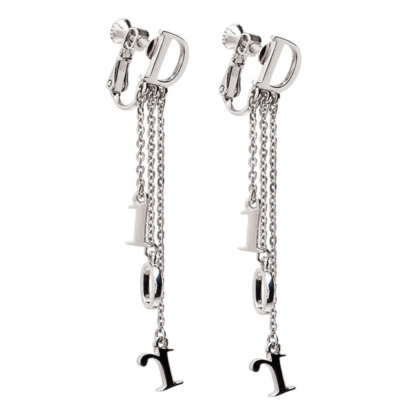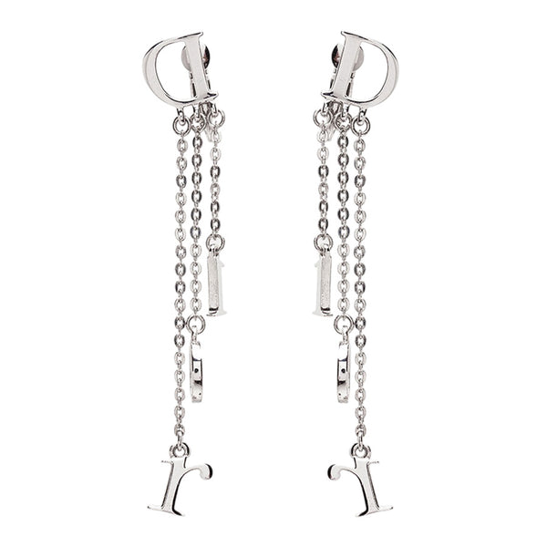 Silver-tone metal drop earrings with Dior spellout, an eye catcher
