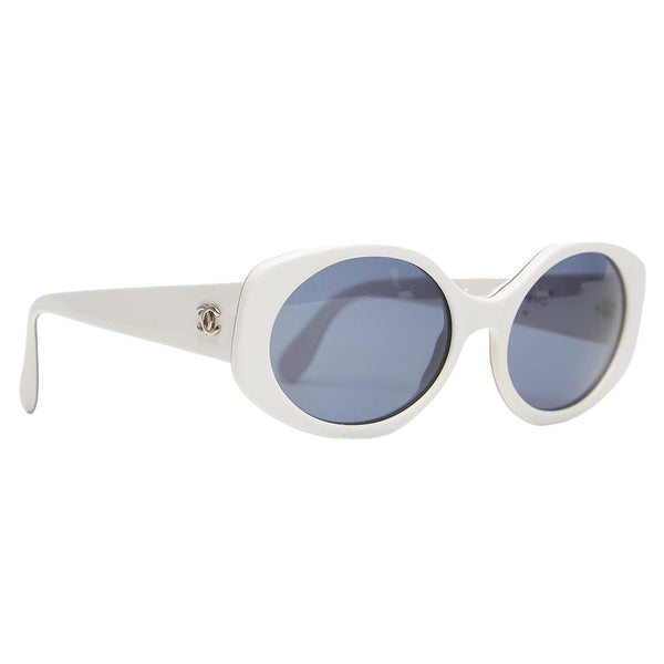 Not everyday you come by a white pair of vintage Chanel sunglasses, designed by the late Karl Lagerfeld in the 90s, these white acetate sunglasses are eye catching, timeless and to be found only available here.
