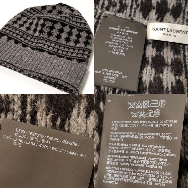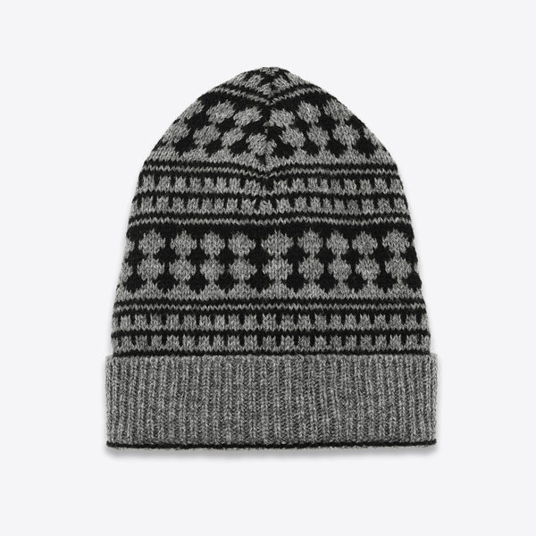 Saint Laurent Paris Hedi 2015 Knit Grey Black Geometric Jacquard Pattern Beanie Hat