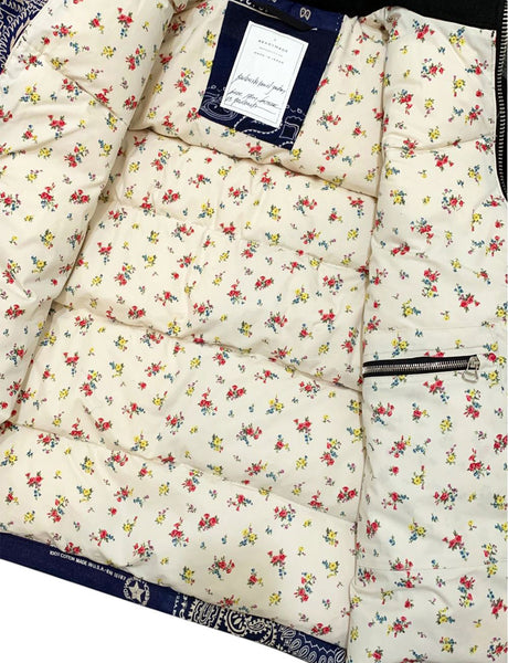 Material: VINTAGE COTTON MADE FROM VINTAGE US BANDANA Outer/Inner: 100% cotton Filling: 85% recycled down, 15% feathers