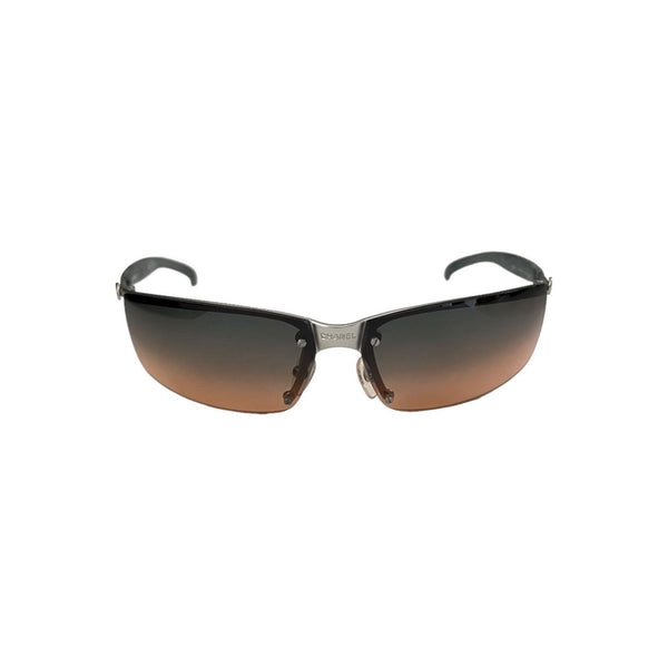 Chanel Silver Logo Orange Blue Tinted Rimless Sunglasses 4011