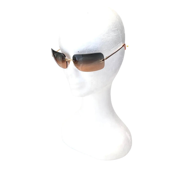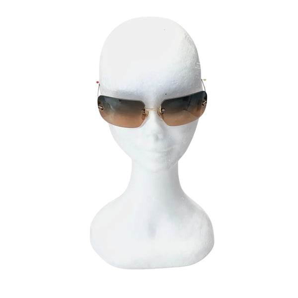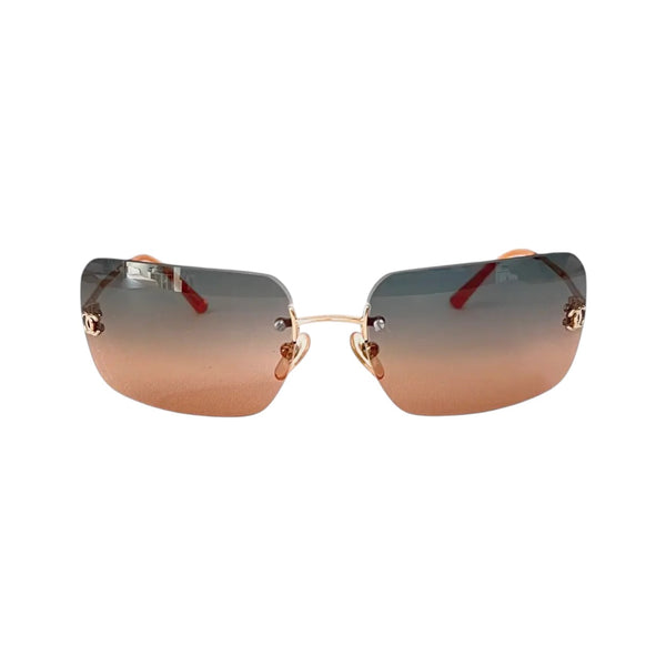 The most simple, clean, straight to the point pair from chanel if the desired look is the rimless frames with an early 2000s. Features a Blue/orange acetate gradient tinted lenses that are reminiscent of a sunset